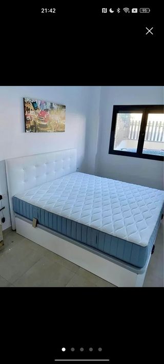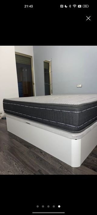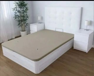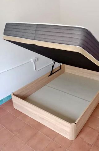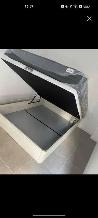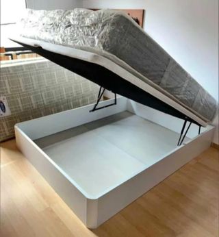 Se vende canapé y colchón en buen estado. - Canapé de madera con acabado blanco. - Colchón de tela gris.