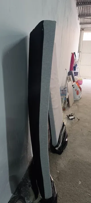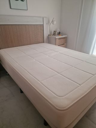 Se vende conjunto de cama de 1,50. - Cabecero tapizado. - Somier metálico. - Colchón con funda.