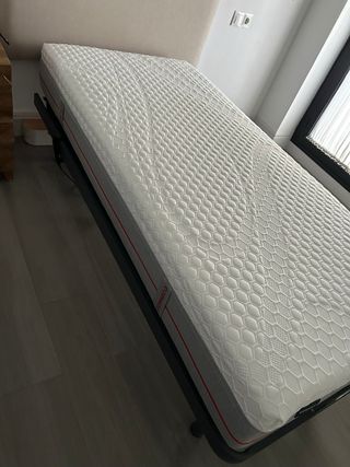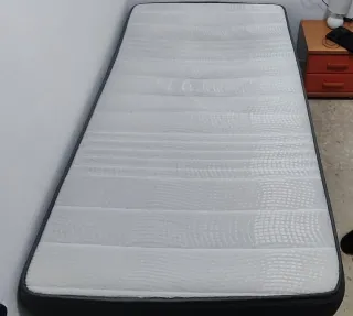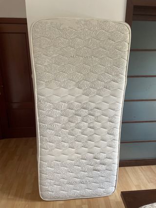 Colchón para cama individual, de la marca Maxcolchón. Con 6cm de viscoelástica. De firmeza intermedia alta. Incluye una funda de tejido Áloe vera. Su precio nuevo fue de 350 €. - Medidas: 90x190 cm.