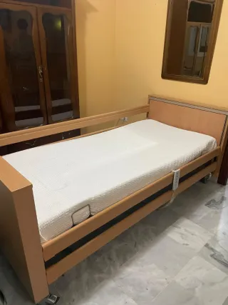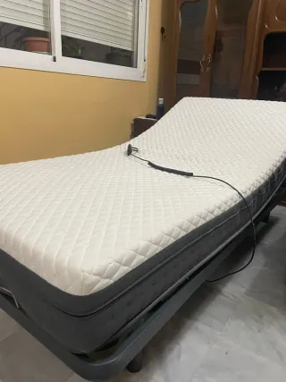 Cama articulada con colchón viscoelástico, muy bien estado. Funciona perfectamente, recogida a domicilio. Precio negociable. - Estructura de metal. - Colchón con funda de tela.