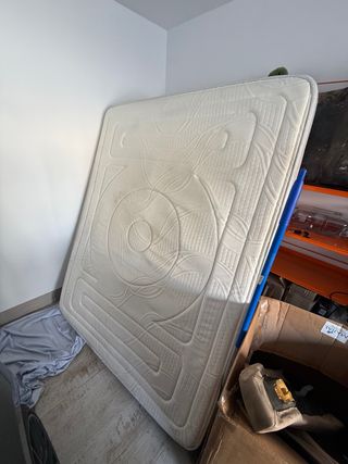 Colchón de matrimonio en buen estado, listo para usar. - Medidas: 135x190 cm. - Funda protectora de plástico incluida. - Diseño acolchado.