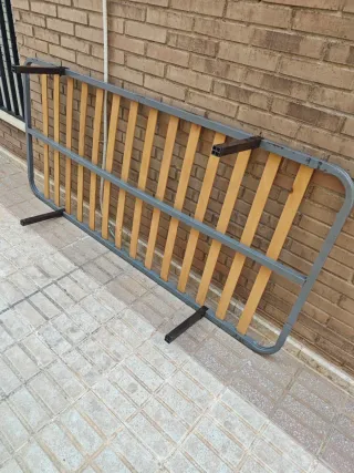 Somier de metal y lamas de madera nuevo, de con 6 patas. Ideal para cama individual. - Medidas: 90 cm de ancho x 200 cm de largo. - Estructura metálica resistente. - Color gris oscuro.