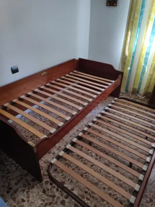 Se venden dos camas individuales de 90 cm, listas para usar. - Estructura de madera. - Incluye colchón y somier