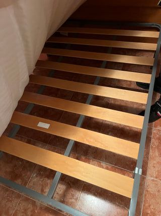 Somier de Pikolin, en color negro, de 135x180 cm. Está en buen estado. Tiene una lama rota, si se pone en los pies no influye. - - Estructura metálica. - Laminas de madera. - Ideal para colchón de 135x180