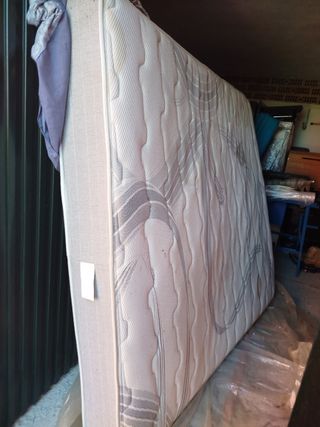 Se vende cama de matrimonio con colchón. - Estructura de cama tapizada. - Cabecero acolchado. - Incluye colchón.