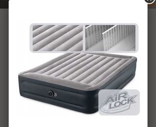 Colchón hinchable Intex modelo Downy, con bomba de pie incorporada. - Altura: 25 cm. - Peso máximo soportado: 272 kg. - Tecnología Fiber-Tech™ para mayor durabilidad y confort. - Incluye bomba de pie para inflar y ajustar la rigidez.