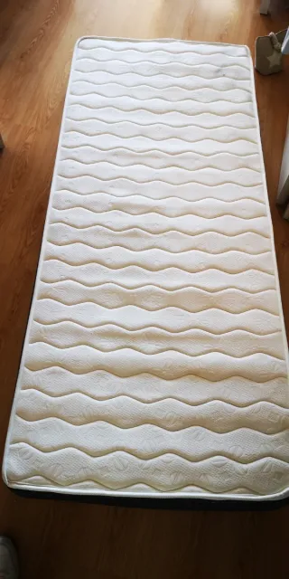 Colchón individual en muy buen estado. Es de tela de poliéster y mide 90 x 190 cm. - Perfecto para una cama individual. - Tejido suave y agradable al tacto. - Se encuentra en excelentes condiciones.