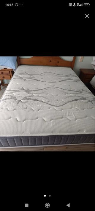 Se vende somier metálico con colchón de espuma de 135x200 cm. - Medidas: 135 cm de ancho x 200 cm de largo. - Estructura del somier de metal. - Colchón de tela.