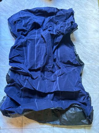 Colchón hinchable de color azul, ideal para camping o invitados. - Diseño con cámaras de aire. - Válvula de inflado y desinflado. No lo he usado nunca , lo comore junto al inflador para camperizar la furgo pero no me cabía y ya no lo puedo devolver