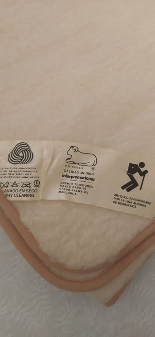Sobre colchón de pura lana virgen, calidad merina. Nuevo, sin estrenar. Perfecto para personas frioleras y también para personas propensas a sudar ya que por su gran capacidad de transpiración reduce la sudoración. Medidas 90cm x 1,90 cm.