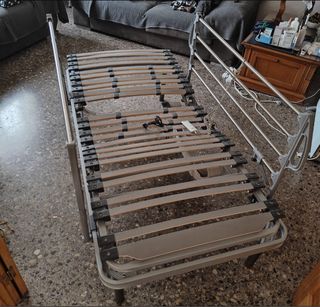 Base de cama articulada eléctrica con somier de láminas. En perfecto estado - Estructura principal de metal. - Láminas de madera. - Barandillas de seguridad