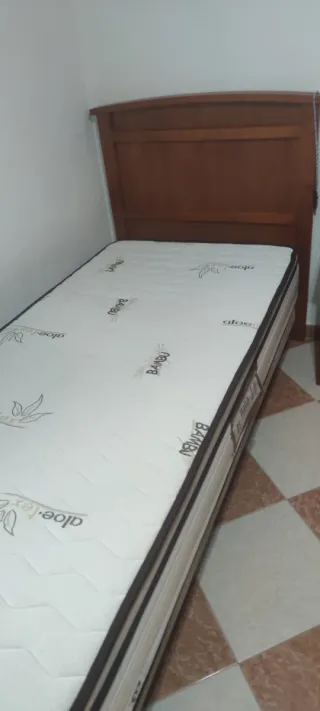 Se vende cama individual de 90cm, lista para usar. - Estructura de madera. - Incluye somier y colchón.