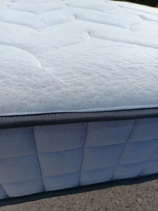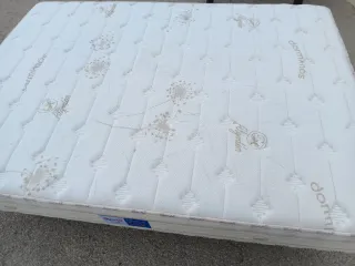 Colchón de matrimonio de 150x190 cm. Ha tenido muy poco uso. Por operación de espalda no me viene bien, pero esta nuevo y es muy cómodo. El modelo es: Emma Original Hybrid ConstantCOOL 150×190 Varias capas. Me costó 502 €. Tengo factura de compra de abril de 2024. - Color blanco y marrón. - Textura suave.