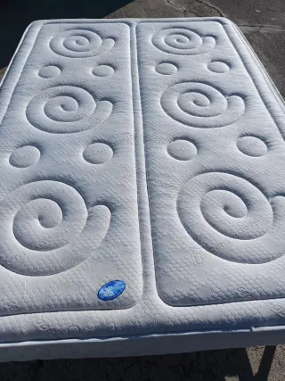 Se vende conjunto de colchón y somier (cabecero aparte); Marca Windsor 180 x 200 cm, Royal Palace, grosor 26 cm, espuma viscoelástica y muelles ensacados, equilibrado, 5 zonas de confort. Envolvente con 4 cm de espuma viscoelástica + espuma super-soft, gran tamaño, extremadamente cómoda, tiene algún desperfecto en las esquinas por los gatos. Si necesita más información no dude en ponerse en contacto. Dormitorio, viscoelástico, matrimonio, descanso, confortable, conjunto, firmeza, barato, oferta, invitado, noche, mesita, armario, cómoda, decoración, hogar, relax, habitación, cabecero, interiorismo, muebles, estilo, confort, descanso