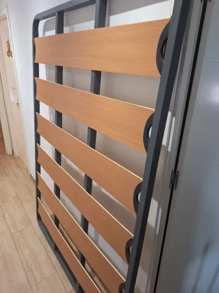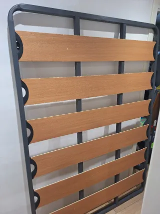 Estructura de cama de 135cm con somier de láminas. - Estructura metálica. - Láminas de madera.