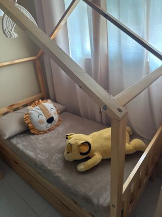 Cama infantil con diseño de casita, perfecta para crear un espacio de ensueño. - Estructura de madera. - Incluye colchón. - Medidas 140 x 070 x 160 de alto