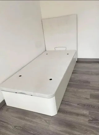 "Leer bien el anuncio" Cama individual,de diseño moderno,SIN SOMIER Y SIN COLCHON. Ideal para habitaciones infantiles o juveniles. Su acabado en blanco aporta luminosidad y amplitud al espacio. Pongo unas fotos de solo el esqueleto,a falta d los cajones que los tengo desmontados. - Estructura de madera,aglomerada, - Incorpora dos amplios cajones para almacenamiento. - Un hueco abierto para libros o decoración.