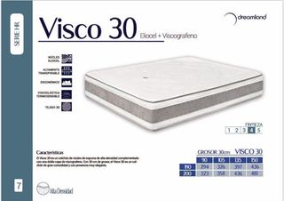 *** CONSULTAR PRECIO CON TRANSPORTE *** Pago contra reembolso ****150x190/265€***Características: - Núcleo Eliocell 25kg - Doble Plancha de visco Grafeno - Tejido Strech cara superior - Tejido 3D cara inferior - Platabanda doble 3D Firmeza alta: firme pero confortable, mantiene la columna en su posición más óptima, proporcionando un descanso de calidad. Protección contra ácaros, Regulador de la temperatura, Antibacteriano, Alivio de la presión, Hipoalergénico. Acoplamiento perfecto a las formas de nuestro cuerpo gracias al acolchado de viscoelástica. Medidas del producto Ancho: 135cm Fondo: 190 cm Alto: 30 cm