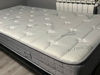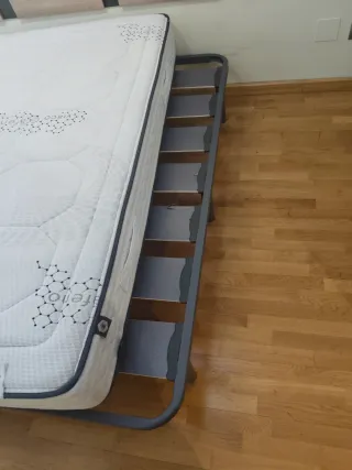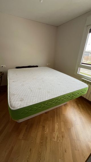 Conjunto de base y colchón sunset sprin de muelles ensacados con visco superior. Se compró a principios de agosto por 590€ pero hasta el 03/10 no me lo entregaron. En ese tiempo mi hijo ha dado un estirón y preveo que se le va a quedar pequeño. Se ha usado 1 semana. Puede venderse por separado. Ese es el motivo de la venta. Se entrega factura para tema de garantías. Si vives en León ciudad o alrededores te lo llevo a casa. - Base con patas de madera. - Colchón con tejido de alta calidad.