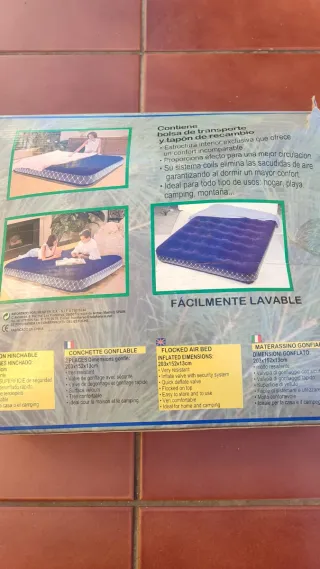 Colchón inflable de color beige, ideal para una persona. - Medidas aproximadas: 90cm de ancho. - Diseño con cámaras de aire para mayor comodidad. - Incluye compresor para inflar el colchón