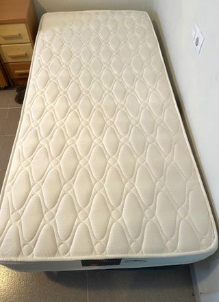 Se vende colchón de 135cm junto con su somier. - Colchón con diseño hexagonal.Me costo 460€ - Somier con láminas de madera Estuvo en habitación de invitados un año casi sin uso,tiene pequeños rasguños la parte de atrás por mal colocación,resto está perfecto.