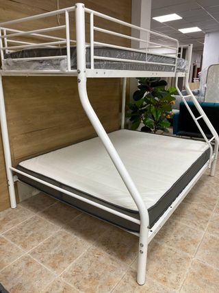 Litera matrimonial de metal en color blanco, incluye dos colchones. - Estructura de metal resistente. - Diseño moderno y funcional."Medidas: Alto: 160 cm Ancho: 135 cm Largo: 190 cm"COLORES :gris negro blanco" - Colchones incluidos. De 20 cm. de grosor viscolastico