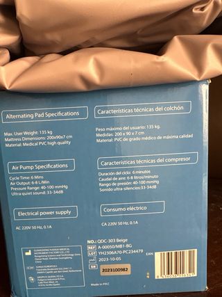 Colchón antiescaras HE-703, como nuevo, ideal para personas con movilidad reducida o que pasan mucho tiempo en cama. • Previene la formación de escaras / úlceras por presión • Sistema alternante de hinchado y deshinchado para mejorar la circulación y distribuir la presión • Compresor muy silencioso – perfecto para uso doméstico o en residencias • Fácil de usar y mantener • 92x190x7 cm Está en muy buen estado, usado poco tiempo y funcionando perfectamente.