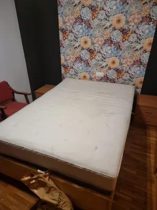 Somier, colchón, cabecero y mesitas