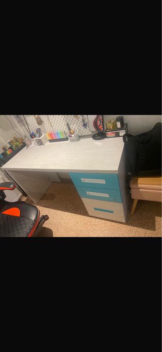Se vende habitación completa con cama, colchón y escritorio. - Cama con amplios cajones de almacenamiento. - Escritorio a juego. - Estantería.