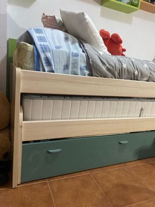 Cama nido en perfecto estado, casi sin uso. Ideal para habitaciones infantiles o juveniles. - Estructura de madera resistente. - Diseño moderno y funcional. - SE VENDE CON COLCHON A MEDIDA