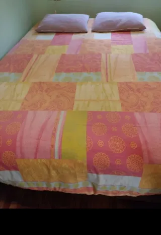 Se vende cama completa en excelente estado, lista para usar. Incluye todo lo que se ve en las fotos: • 🖤 Estructura metálica negra con cabecero decorativo. • 🌿 Colchón de alta calidad (marca Bio Wool Magnetic), limpio y muy cómodo. • 🌸 Ropa de cama floral (funda nórdica, sábanas y fundas de almohada). • 🛋️ Cojines decorativos incluidos. Todo en perfecto estado, sin ruidos ni daños. Ideal para dormitorio principal, habitación de invitados o piso de alquiler. 🚚 Fácil de desmontar
