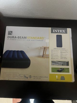Colchón hinchable Intex modelo Dura-Beam Standard, ideal para camping o invitados. Fácil de inflar y desinflar. - Tecnología Fiber-Tech. - Medidas: 1.37m x 1.91m x 25cm (54 x 75 x 10). - Bomba no incluida.