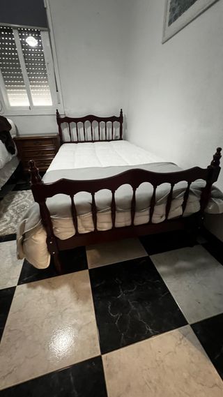 Cama antigua de madera oscura con colchon incluido