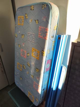 Cuna azul con colchón