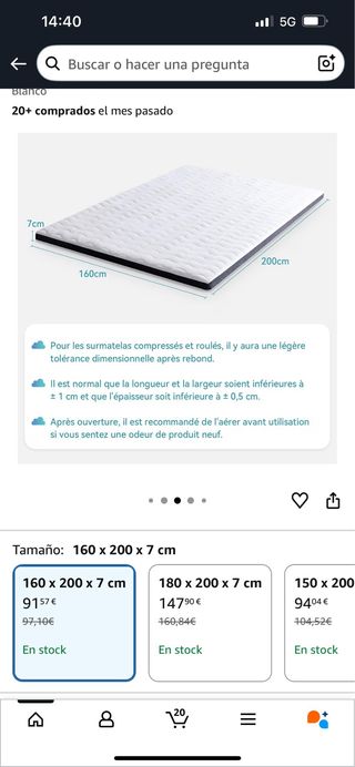 Sobre colchón viscoelástico nuevo 160x200x7cm