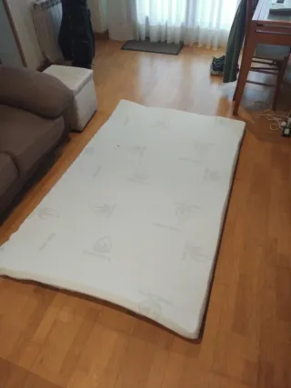 Colchón 90x190 cm Espesor 16 cm Núcleo viscoelástico y fibras hipoalergénicas de alta resistencia. Revestido de tela Damasco altamente transpirable. Diseño doble para poder voltearlo periódicamente. Firmeza media. Se vende por falta de uso. Se ha usado 3-4 veces. Precio nuevo: 140€. Ideal para invitados, pisos vacacionales, de alquiler, etc.