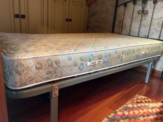 Recogida en Santiago de Compostela. Somier Fibermaster y colchón en muy buen estado y de calidad pero no recuerdo la marca del colchón.Usado como cama de invitados en escasas ocasiones. Está como nuevo y limpito La cama es de 1,05. Cómoda y fácil de mover ya que no es muy pesada