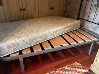 Se venden 2 bases de somier de 1,05 metros y sus colchones. Se pueden vender juntas o por separado. - Estructura metálica. - Láminas de madera.