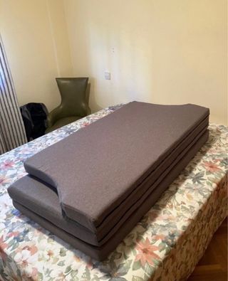Colchón plegable ideal para camper o uso ocasional. Hecho a medida para Traveller, Space Tourer y Proace. Apenas usado, prácticamente nuevo. -Diseño plegable para fácil almacenamiento y transporte. -Grosor: 5cm espuma extrafirme + 3cm visco. -Tapizado en tela de agradable textura, de color gris oscuro. -Funda extraible y lavable.