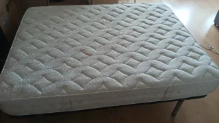 Se vende estructura de cama metálica en excelente estado y colchón de 140x200 cm, con rotura en la parte trasera. - Estructura de cama de metal. - Colchón de tela.