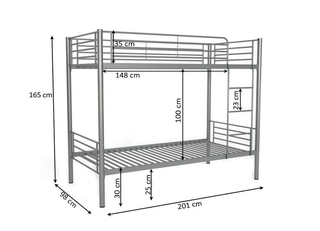Estupenda, barata y practica litera con estructura metálica, con cama de matrimonio (135cm) abajo y cama de (90cm) arriba. 📐Medidas: •Cama de abajo: 145 x 200 cm (para colchon de 135 x 190 cm, no incluido). •Cama de arriba: 90 x 200 cm (para colchón de 90 x 190 cm, no incluido). •Altura: 160 cm Peso aconsejable Cama de abajo: 200Kg. Peso aconsejable Cama de arriba: 100Kg. ✨Color: Gris / Negro / Blanco. 🚚Porte y montaje no va incluido en el precio. 🚛Realizamos envíos. - Más información aquí 613*81*2370