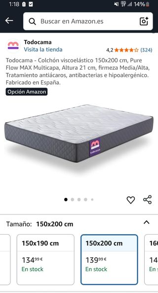 ¡¡¡NUEVO!!! Colchón viscoelástico Todocama de 150x200 cm. - Modelo Pure Flow MAX Multicapa. - Altura de 21 cm. - Firmeza Media/Alta. - Tratamiento antiácaros, antibacterias e hipoalergénico. - Fabricado en España.