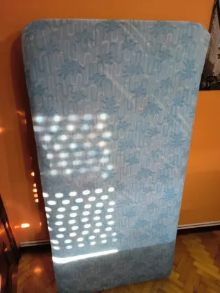 Colchon individual de 90 por 190 cm de espuma en perfecto estado con funda con diseño florar en tonos azules y blancos recién lavada. Sin manchas. Grosor 16cm. Posibilidad de transporte en Vigo - Medidas: 0,90 por 1,90 m.