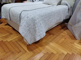 Se vende somier tapizado y colchón. - Medidas del somier: 135 x 190 cm. - Material del somier: tela.
