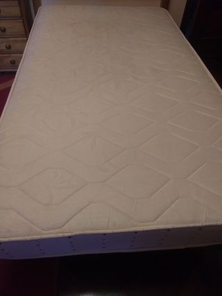 Se vende conjunto de colchón y somier. - Medidas: 120x190 cm. - Estructura del somier metálica con láminas de madera.