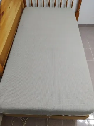 Se vende conjunto de somier, colchón y cabezal de 90 cm. - Somier de madera. - Colchón. - Cabezal.