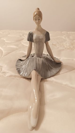 Preciosa figura de porcelana de una bailarina sentada. Detalle delicado y elegante. - Tonos beige y gris. - Material de porcelana.