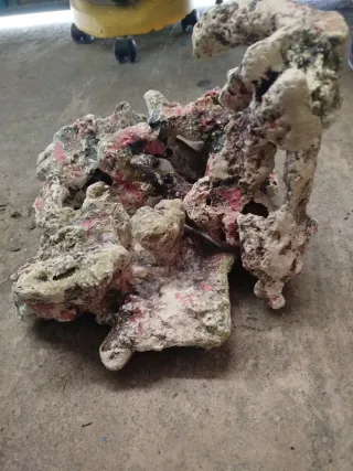 Conjunto de 21 kg rocas naturales, ideales para crear un paisaje único en tu acuario marino. Su estructura porosa ofrece un hábitat natural para corales y peces. - Textura irregular y porosa. - Color blanco y beige. - Variedad de formas y tamaños. Pongo fotos del acuario al comienzo y como quedó con el paso del tiempo,aquí están mezcladas las 3 rocas naturales y las artificiales