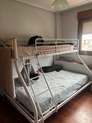 Cama individual lista para usar con colchon superior incluido. -Se regala la funda nórdica que hay en la foto. -Medidas 90x200 -2 Cajones inferiores -Cama adicional en la parte inferior(sin colchon incluido)