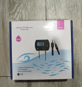 Monitor de pH y temperatura para acuarios, modelo PH-991. - Diseño compacto y fácil de usar. - Monitorización en línea. - Montaje en pared.